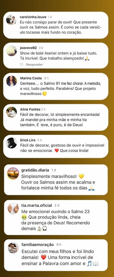 Com essa nova abordagem sonora, os Salmos deixam de ser apenas lidos — e passam a ser cantados, sentidos e vividos com o coração.