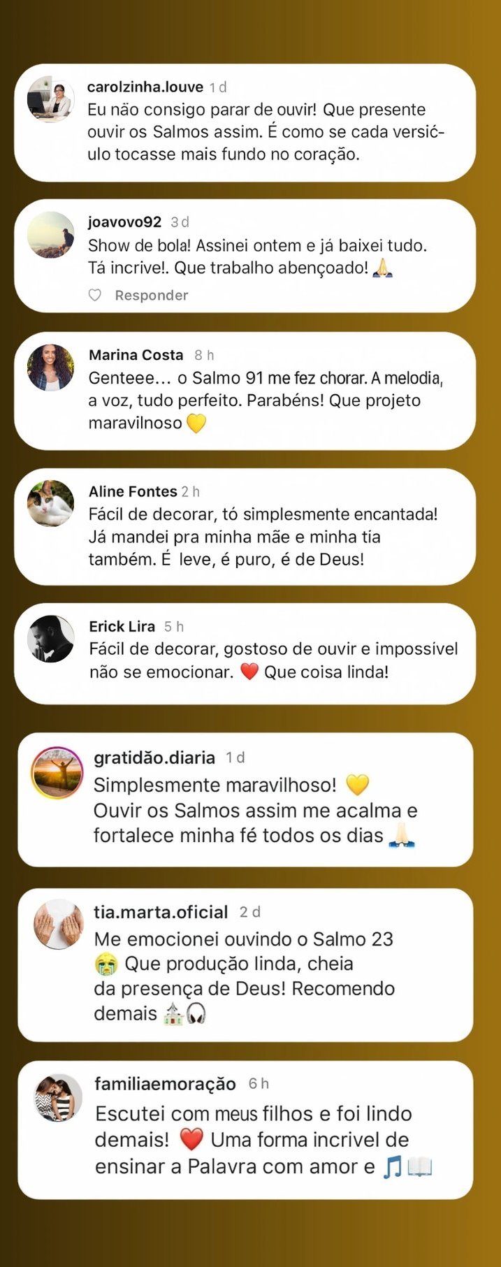 Canções suaves, emocionantes e espirituais que transformam cada Salmos em uma experiência sonora única.